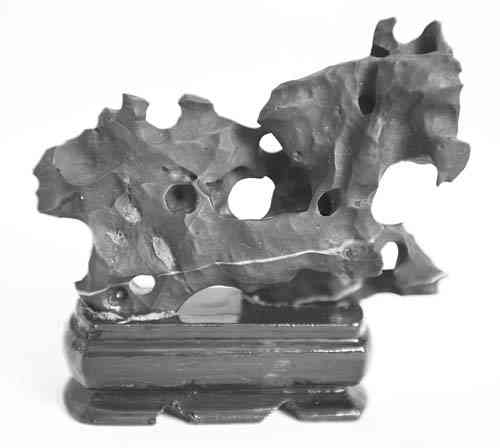 这是一块纯正的青州小玲珑石,其外形是一匹气定神闲正在踱步的马。之所以叫它“黑马”,一方面是由于小玲珑石被酸洗过后呈现乌黑的颜色,另一方面是因为这匹马本不属于我,但它与我有缘,所以就称其为“黑马”,以此表达意外得到特别珍惜的心情。