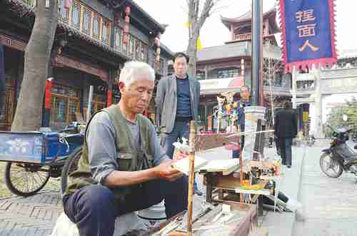 大碗茶 纺线 虎头鞋 撂棒棰 吕剧 木轮推车 捏面人 锵剪子磨菜刀 青州方言 三弦 本版图片由本报记者曹健强摄影