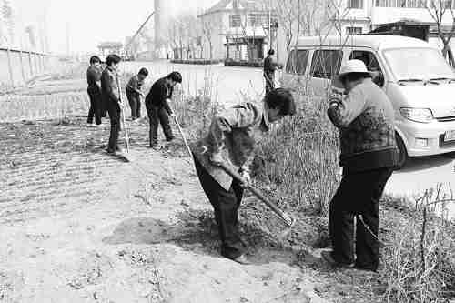 3月28日,黄楼街道东坝村的村民们正在挖坑准备栽种树苗。当日,黄楼街道东坝村组织村民们拿起铁锨、铁锹,走上村头开展植树绿化活动。她们有的单独行动,有的两人一组,先用尺子丈量好每个树坑的位置,然后挖出一个深坑,把街道提供的法桐树苗小心翼翼的栽种下去,及时的填土、浇水。 赵振晖 刘铠铭摄